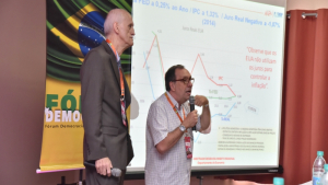 O presidente ainda continuou: ?Para vocês terem uma ideia, neste biênio, estaremos acumulando uma queda na renda das famílias, superior a 10%. Por este motivo, é muito importante as causas dos erros que jogaram o Brasil nesta situação, para que se interrompa este ciclo de contínua piora na economia. No Instituto DEMOCRATIVA estamos fazendo isso arduamente e precisamos contar com vocês, trabalhadores, precisamos unir forças para retomar novamente a economia do país com força total?.